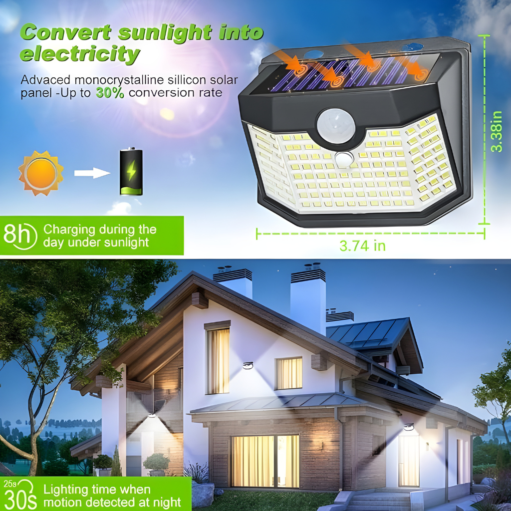 The 120 LED Outdoor Solar Motion Lights deliver practical performance and sustainable design. Their combination of brightness, weather resistance, and automatic motion detection makes them an ideal choice for enhancing outdoor visibility and security. Simple to install, these solar wall lights offer a dependable lighting solution for gardens, patios, and other exterior areas.