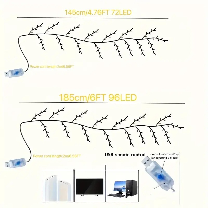 - Flexible and Bendable: Shape the Bendable LED Willow Vine String Lights into any form, perfect for wrapping around objects or adding to decor.