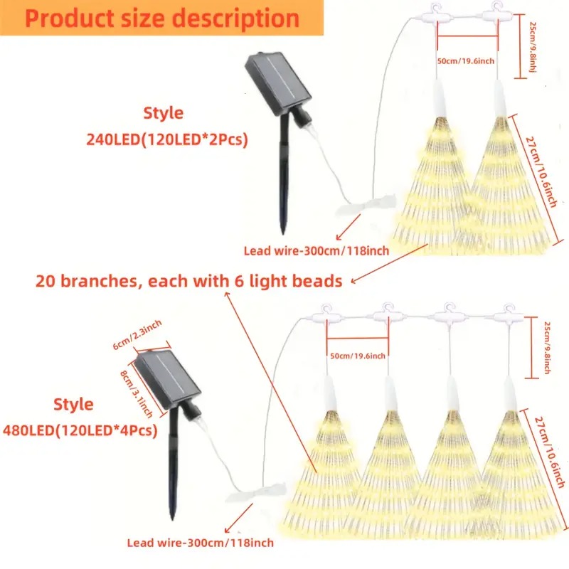 Transform your outdoor spaces with the Hanging Solar LED Firework Lights. Designed with 240/480 LEDs, these starburst ball lights add a look of elegance to your garden, courtyard, or Christmas decorations. Featuring 8 lighting modes and a copper wire design, these solar-powered lights create a magical ambiance that enhances any outdoor setting.