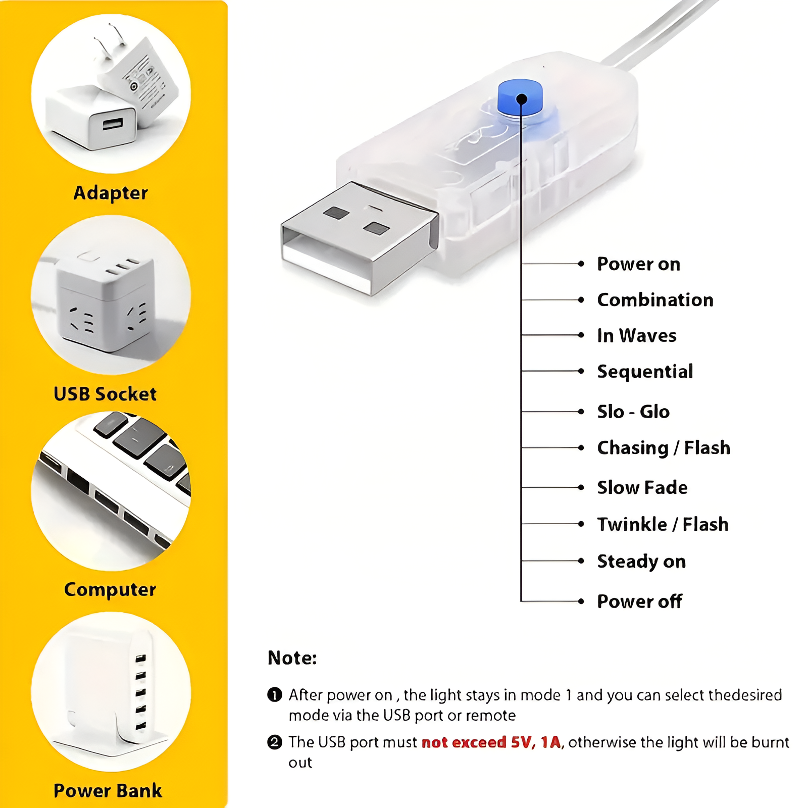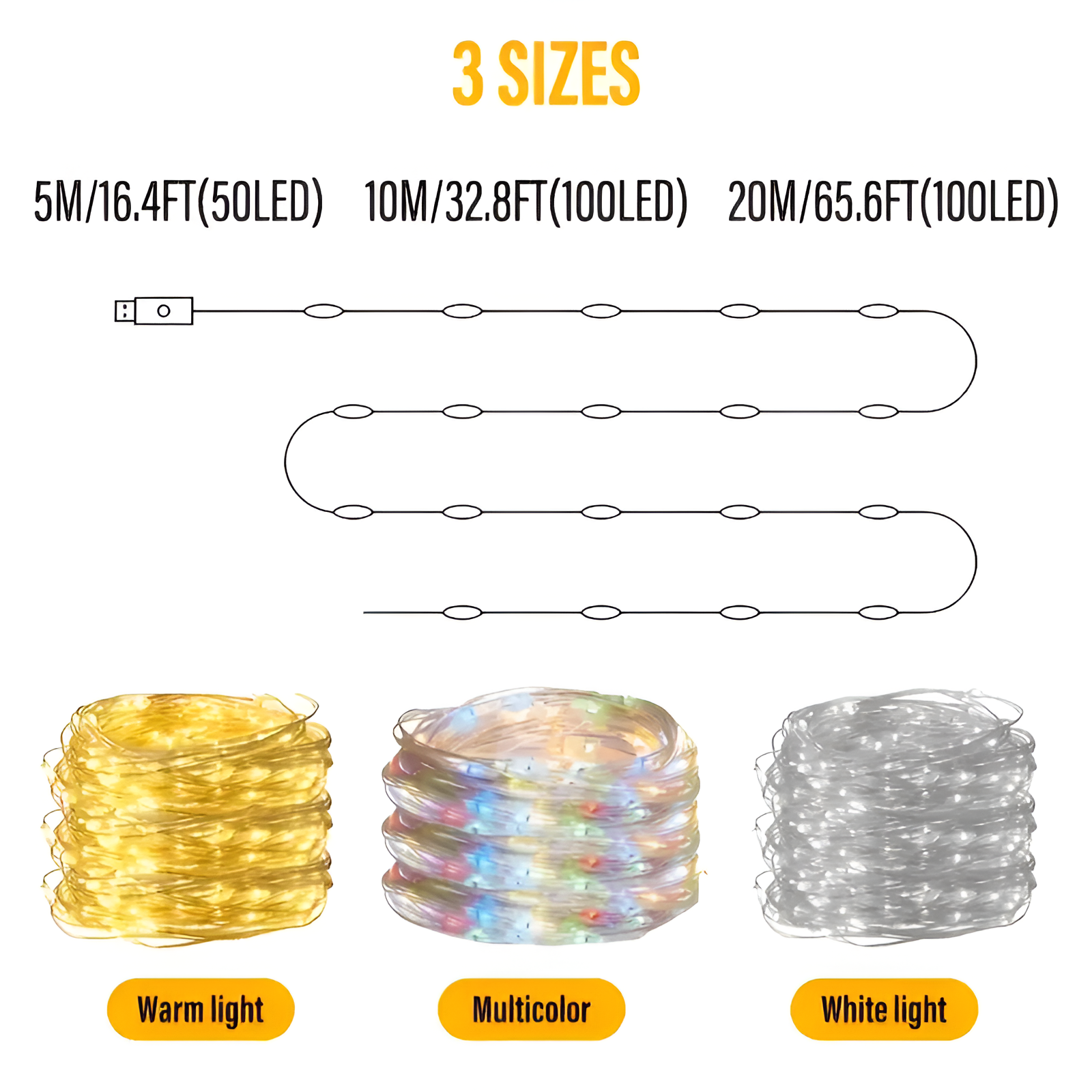 The USB Powered Fairy String Lights Set is a versatile and elegant solution for creating a warm, festive atmosphere. With a variety of lighting modes, remote control functionality, and USB power, these lights are perfect for weddings, Christmas, birthdays, and beyond.
